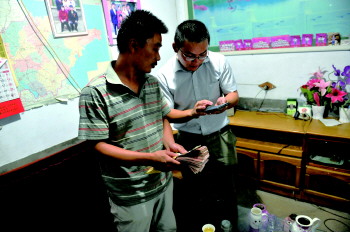 Gao Ping entrega el dinero al padre del ni?o enfermo para iniciar el tratamiento.