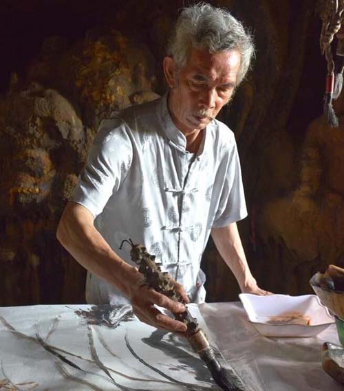 | Song Chuan Zhong pinta cuadros en la cueva. |