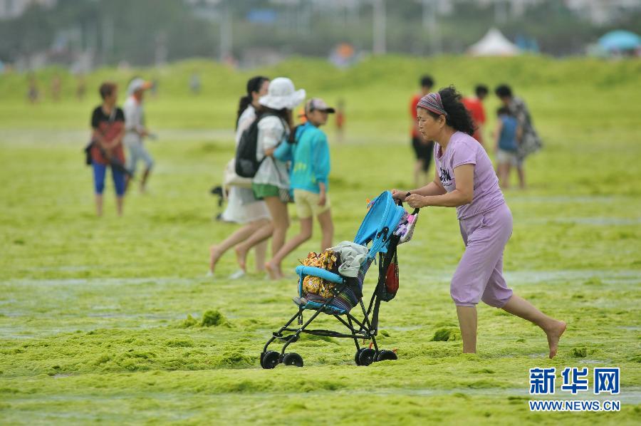 El 20 de julio, los turistas caminaron sobre las algas marinas.