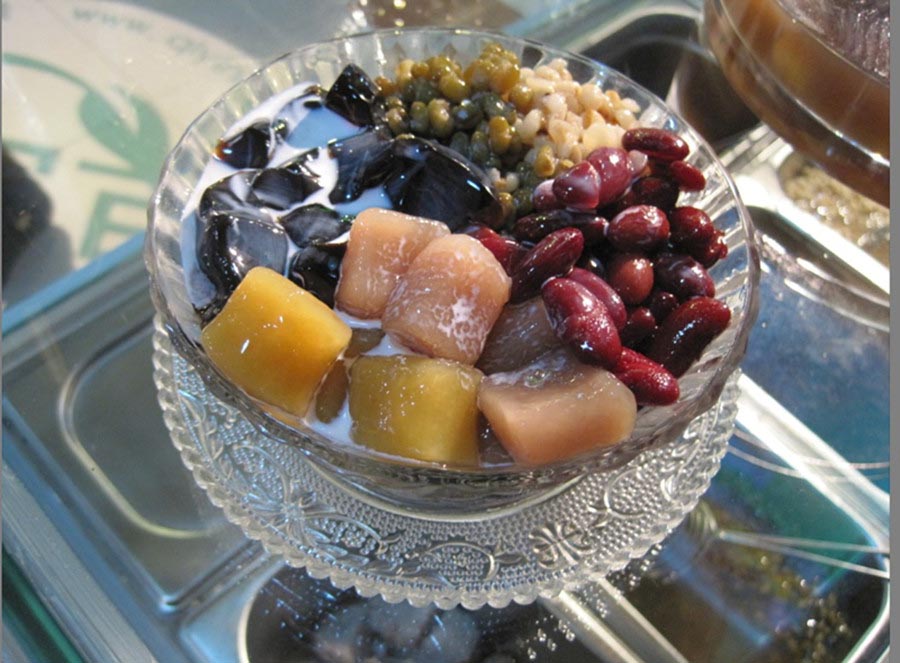 La gelatina de hierba, o "Xiancaodong" en chino, se hace con una hierba especial cuyos tallos y hojas se convierten en gelatina al sacerlos al sol.
