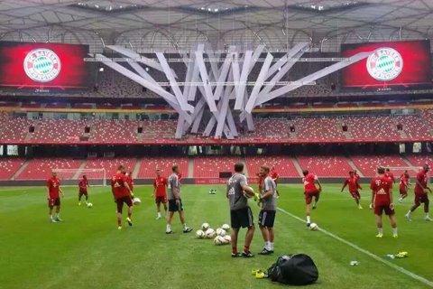 Foto de la decoración publicitaria dentro del “nido de pájaro”. (Foto cedida por la administración del estadio olímpico)