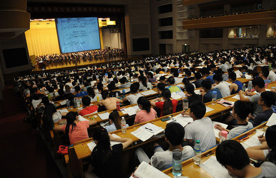 Jinan, 03/08/2015(El Pueblo en Línea)-Más de 3.000 estudiantes han realizado los cursos previos a los exámenes de admisión a un postgrado en un gran salón en Jinan, provincia de Shandong, el miércoles. Para estos candidatos, la mayoría titulados universitarios, las vacaciones de verano son un momento importante para prepararse para los exámenes que tendrán lugar en enero. Una pantalla de 50 metros cuadrados muestra las notas de los profesores.