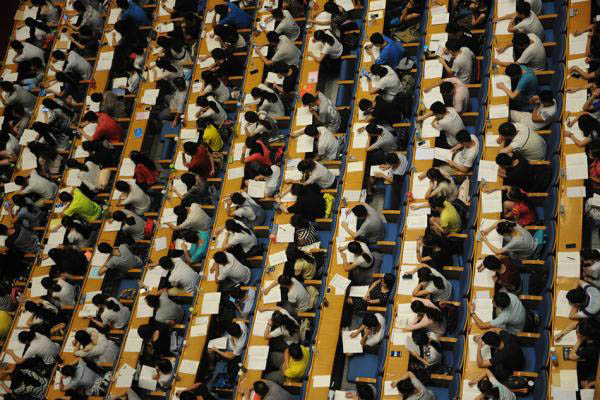 Jinan, 03/08/2015(El Pueblo en Línea)-Más de 3.000 estudiantes han realizado los cursos previos a los exámenes de admisión a un postgrado en un gran salón en Jinan, provincia de Shandong, el miércoles. Para estos candidatos, la mayoría titulados universitarios, las vacaciones de verano son un momento importante para prepararse para los exámenes que tendrán lugar en enero. Una pantalla de 50 metros cuadrados muestra las notas de los profesores.