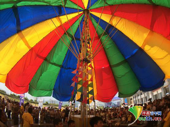 Nanchang, 04/08/2015(El Pueblo en Línea)-Un paraguas grande y colorido que cubre los 400 metros fue exhibido en un condado en la ciudad de Jiujiang, provincia de Jiangxi.