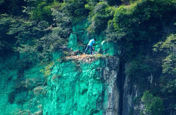 El aldeano, apellidado Yang, contrató a varios pintores para que pintaran de verde la pared de la monta?a pintores contratados para pintar los acantilados que se encuentra frente a su casa porque creía que las laderas blancas dan mala suerte a su familia. Ahora el acantilado de 2.000 metros cuadrados es de color verde.