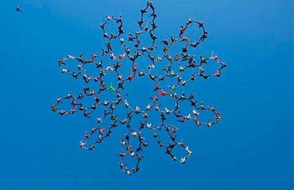 Le tomó al equipo internacional 13 intentos para romper el récord anterior de skydiving, fijado en 2012 por 138 paracaidistas.