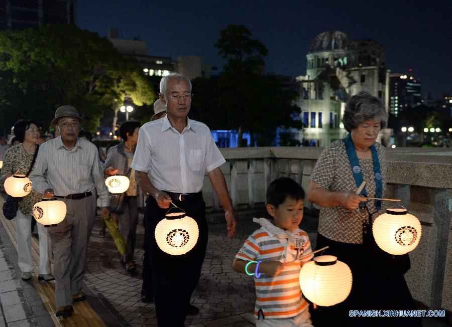 HIROSHIMA, Japón, 6 ago (Xinhua) -- Hiroshima, ciudad que sufrió el bombardeo atómico a manos de Estados Unidos en 1945 durante la Segunda Guerra Mundial, conmemoró el jueves el 70o aniversario del bombardeo en el Parque Memorial de la Paz de la ciudad, con su alcalde pidiendo la paz y que se eliminen las armas nucleares.