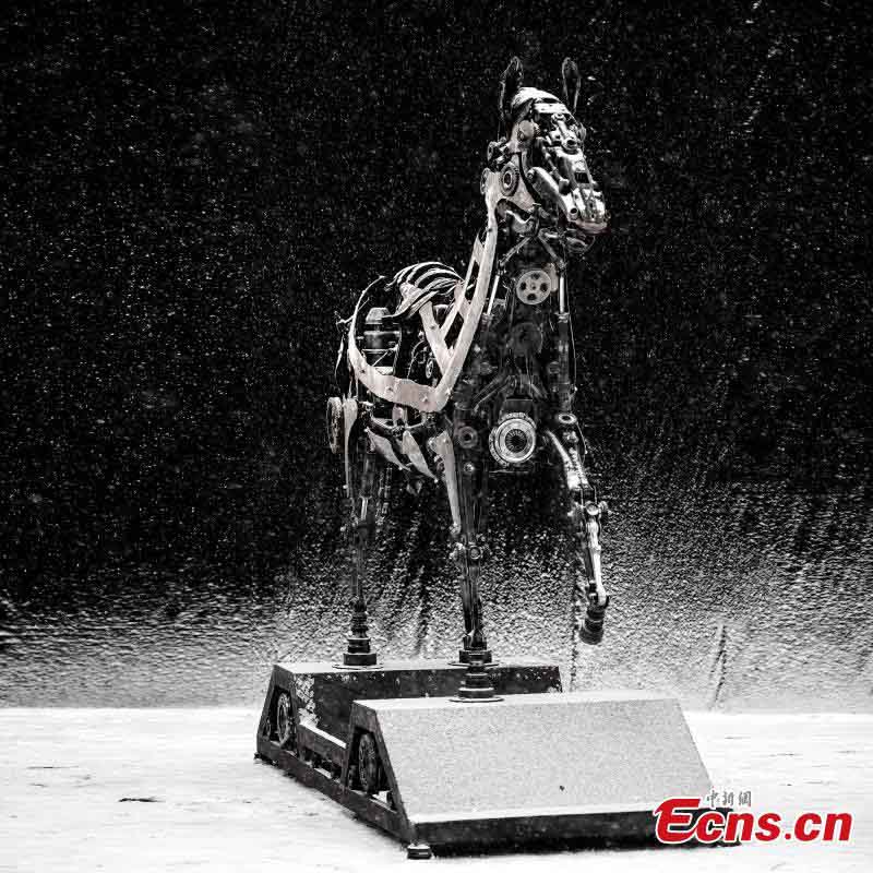 Obras hechas con materiales de construcción en desuso y piezas antiguas en un estudio del condado Hutubi, prefectura autónoma Hui de Changji, región autónoma Uygur de Xinjiang.