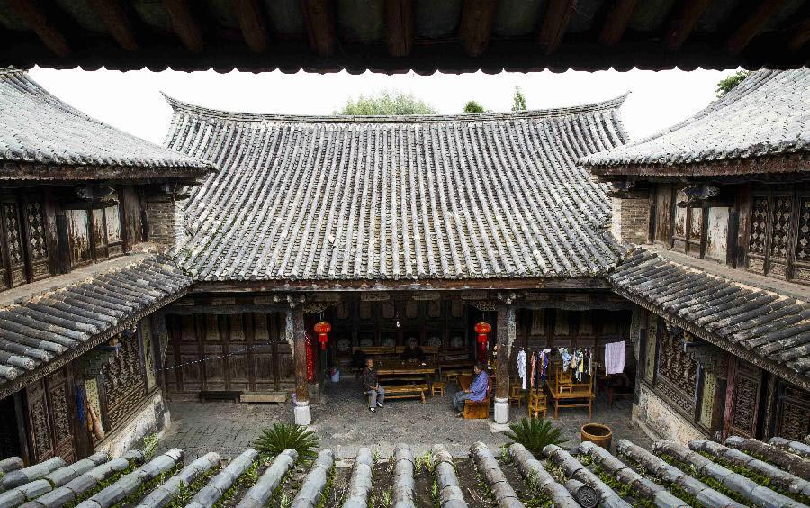 Los campesinos charlan en la aldea de Tuanshan, prefectura autónoma Hani-Yi de Honghe, provincia de Yunnan. El pueblo Tuanshan es conocido por su arquitectura antigua bien conservada.
