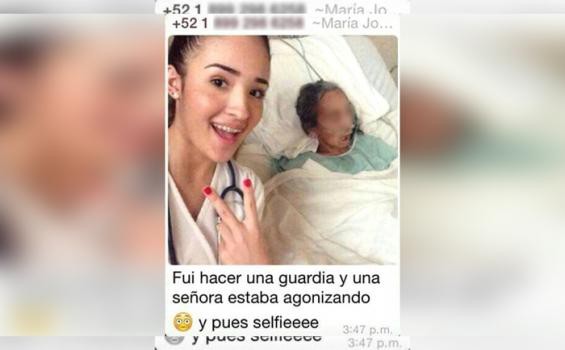 Ciudad de México,10/08/2015(El Pueblo en Línea)-Una selfie junto a una mujer acostada en una cama, presuntamente en estado crítico tomada por María José González, alumna de la Facultad de Medicina de la Universidad del Valle de México, provocó indignación en las redes sociales.