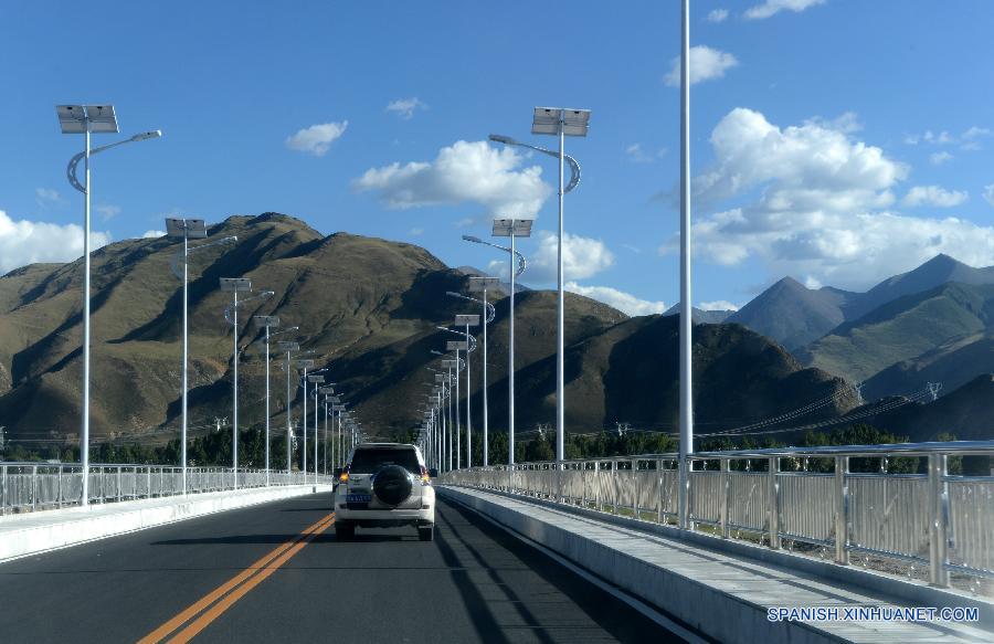 La fotografía muestra el puente Dagze sobre el Río Lhasa.