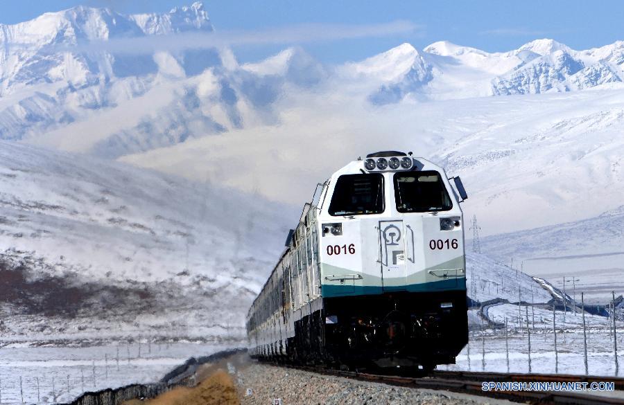 La fotografía tomada el 25 de octubre de 2006 muestra un tren pasando la meseta en la región autónoma del Tibet.