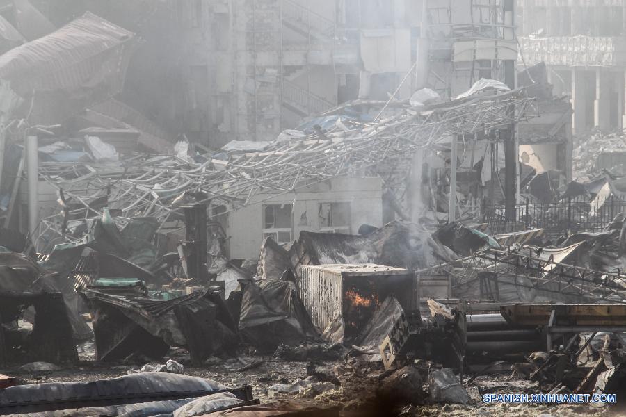 Almacén de explosión en Tianjin en llamas otra vez