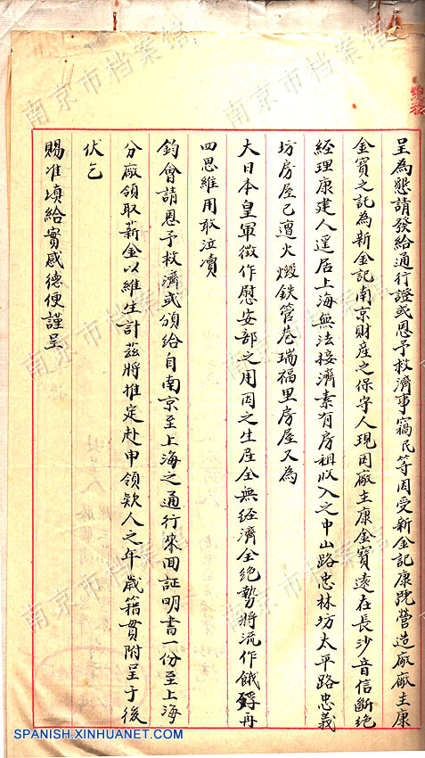BEIJING, 17 ago (Xinhua) -- Documentos históricos revelan que las autoridades japonesas planearon y controlaron directamente un sistema para obligar a mujeres de China y de otros países a la esclavitud sexual durante la Segunda Guerra Mundial.