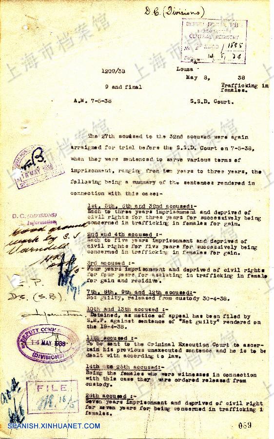 Cuatro de los criminales fueron sentenciados por los tribunales locales y dos de los principales criminales detrás del tráfico se escondieron en la zona ocupada por el ejército japonés, y por tanto, no fueron arrestados, según los registros históricos.