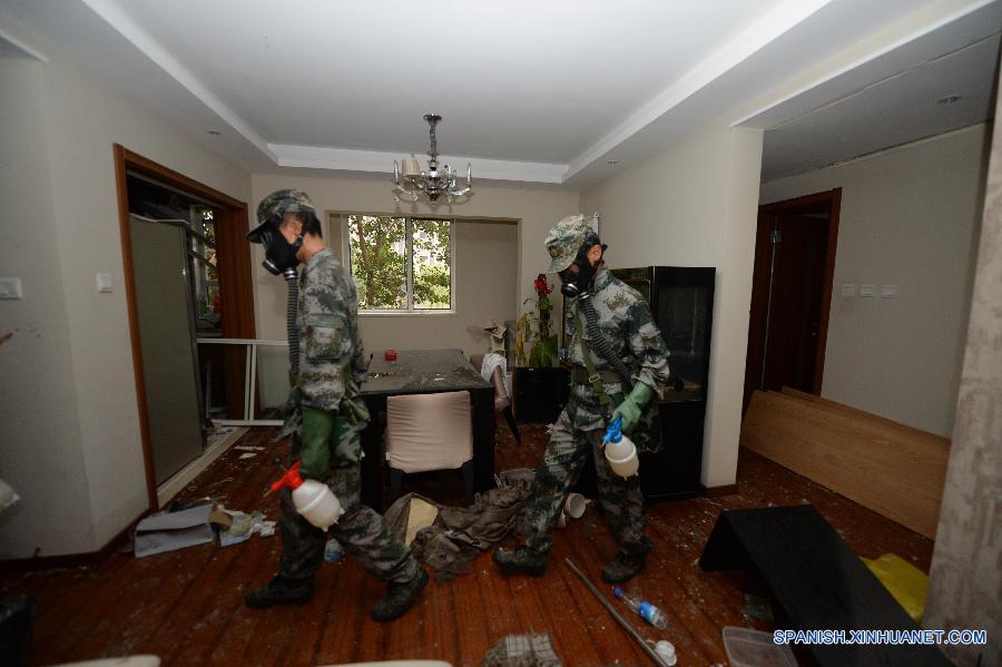 TIANJIN, China, 18 ago (Xinhua) -- Las operaciones de limpieza continuaron hoy en Tianjin, norte de China, casi una semana después de que ocurrieran dos potentes explosiones en un almacén que guardaba productos peligrosos.