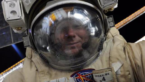 | Cosmonauta ruso realiza un selfie en el espacio abierto |