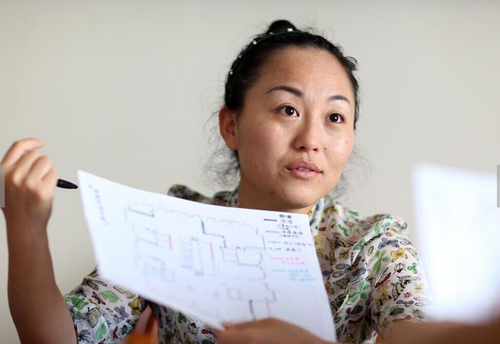 Wang Rong analiza el esquema de dise?o de interiores con sus clientes en su oficina en Xi'an, provincia de Shaanxi.