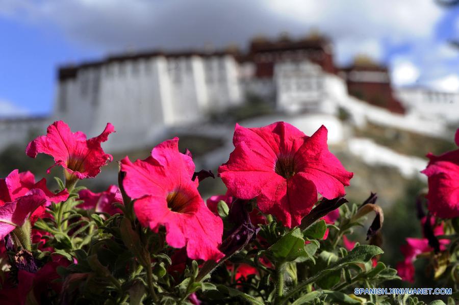 La foto muestra flores y el Palacio Potala. Este a?o marcael 50 aniversario del establecimiento dela Región Autónoma deTibet.