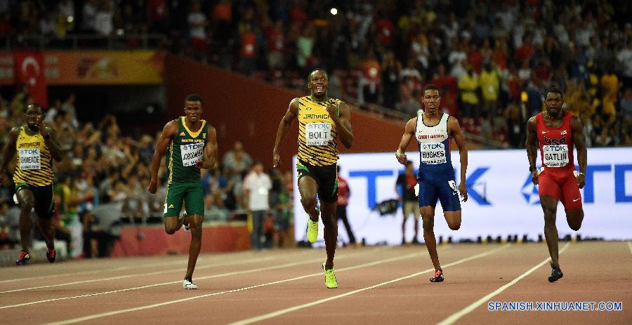 Gatlin, quien concluyó atrás de Bolt en la final de 100 metros el domingo, se quedó con la plata con 19,74 y Anaso Jobodwana de Sudáfrica con el bronce por su tiempo de 19,87.