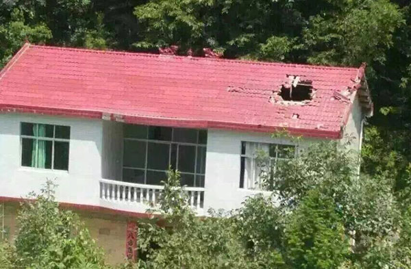 Imagen del tejado destrozado por los restos de cohete. [Foto/qq.com]