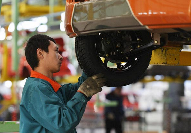 Línea de ensamblaje de una planta de automóviles en Zouping, Shandong.