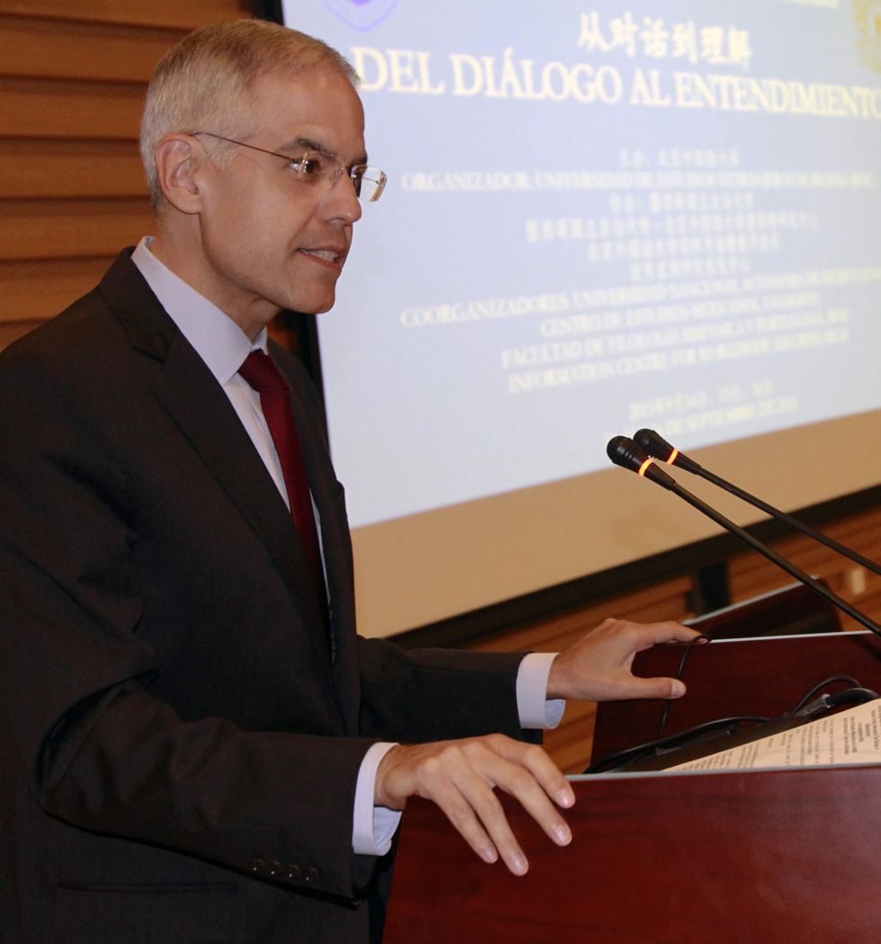 Julián Ventura, embajador de México en China intervino en la sesión inaugural del II Coloquio Internacional de Estudios Chinos y Mexicanos, Pekín, 14 de Septiembre del 2015. (Foto: YAC)