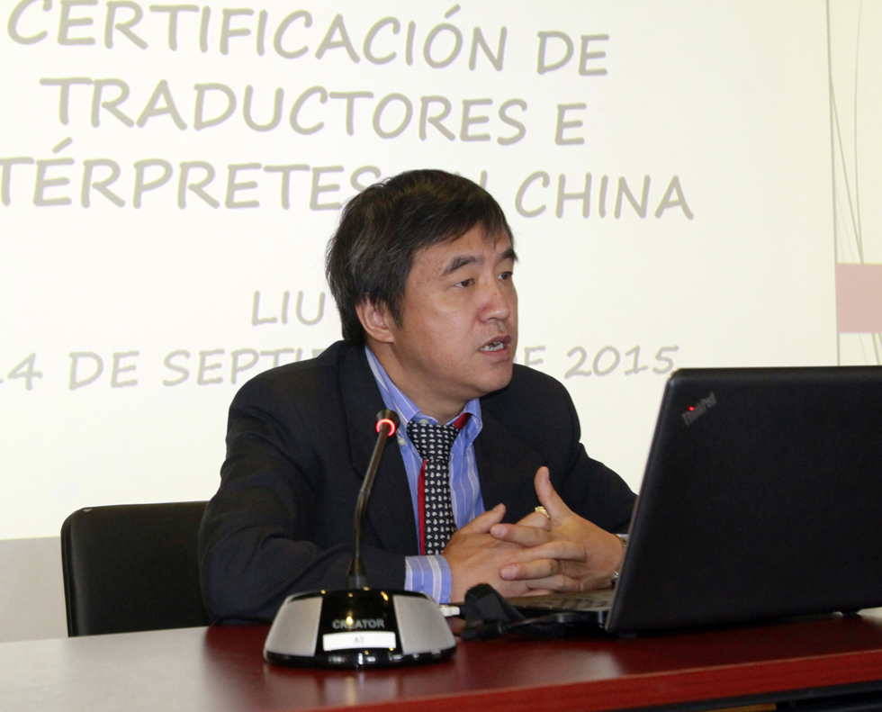 Liu Jian, decano de la Facultad de Espa?ol y Portugués de la Universidad de Estudios Extranjeros de Beijing, destacó la importancia de la formación de intérpretes chino-espa?ol. II Coloquio Internacional de Estudios Chinos y Mexicanos, Pekín, 14 de Septiembre del 2015. (Foto: YAC)