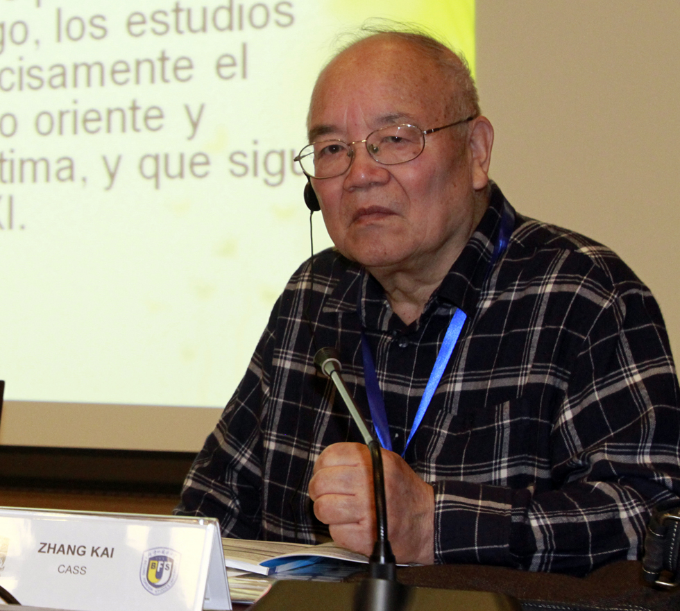 El destacado historiador chino Zhang Kai, investigador de la Academia China de Ciencias Sociales, dialogó sobre México como tercer polo entre la comunicación cultural oriental-occidental. II Coloquio Internacional de Estudios Chinos y Mexicanos, Pekín, 14 de Septiembre del 2015. (Foto: YAC)