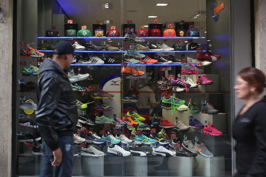 Un residente observaba una tienda de zapatos en el centro de Sao Paulo, Brasil, el 14 de septiembre. De acuerdo con prensa local, después de que la agencia de calificación crediticia Standard & Poors anunciara la pasada semana un corte en la nota de crédito de Brasil para BB+, con perspectiva negativa, un sondeo revelado por el banco central de Brasil indicó que la previsión de los analistas del mercado financiero apuntó que la economía brasile?a va a contraer a 2,55% durante 2015 y en el a?o 2016 terminará con una contracción de 0,60%.