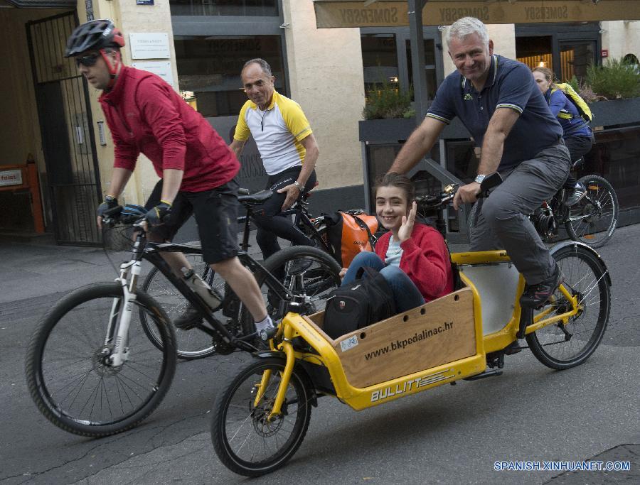 La gente montaba bicicletas para celebrar el día internacional sin coches en la capital de Croacia, el 22 de septiembre.