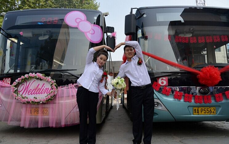 Zhengzhou, 23/09/2015(El Pueblo en Línea) - Una pareja quería celebrar una boda ecológica, y la tuvieron utilizando transporte colectivo.