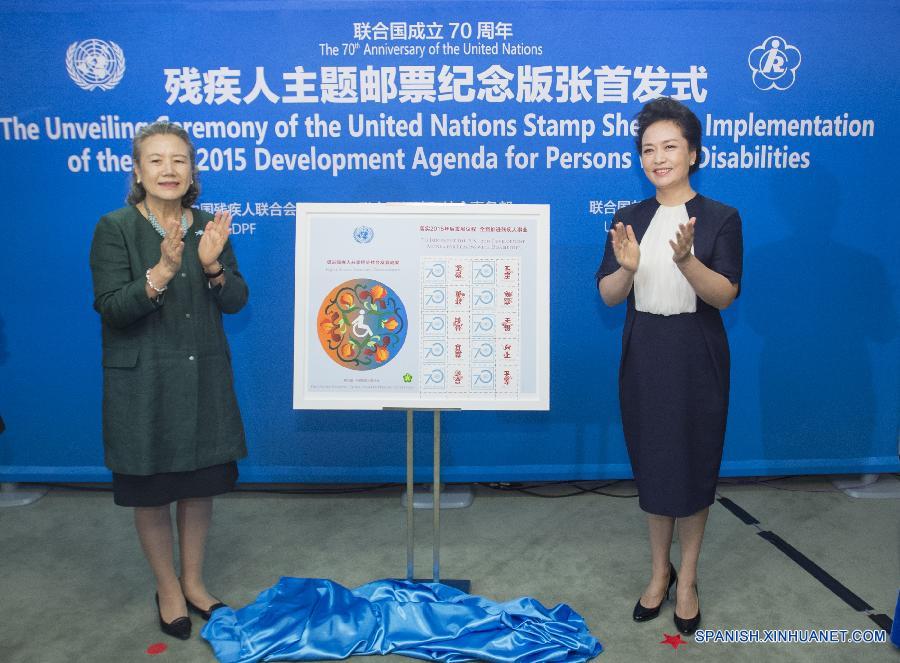 NACIONES UNIDAS, 27 sep (Xinhua) -- Peng Liyuan, esposa del presidente chino, Xi Jinping, desveló el domingo una pliego de sellos conmemorativos dedicado a los discapacitados chinos.