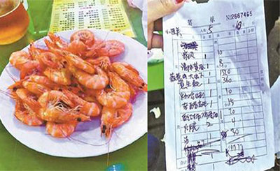 Un turista de Nanjing, de apellido Zhu, se quejó de ser estafado al ordenar una cena de mariscos en Qingdao.