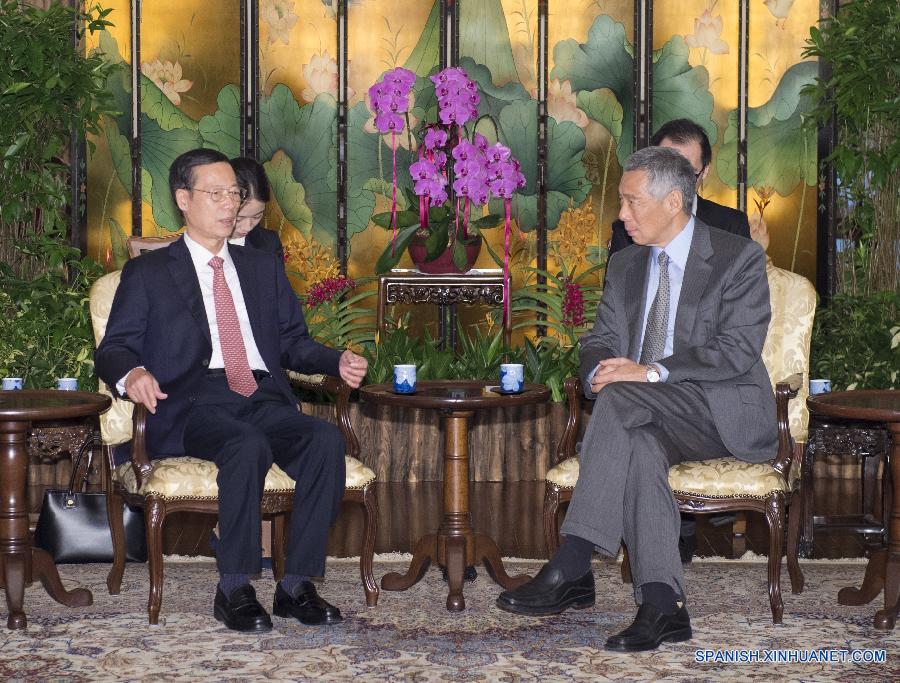 Cuando llegó el lunes a Singapur, Zhang se reunió con su homólogo singapurense, Teo Chee Hean. El martes en la tarde, se reunió con el presidente singapurense, Tony Tan Keng Yam, y con el primer ministro Lee Hsien Loong.