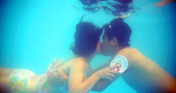 En esta foto del 2 de agosto de 2014, una pareja se besa bajo el agua en un concurso de besos en Wuhan, provincia de Hubei, en el día de San Valentín chino.
