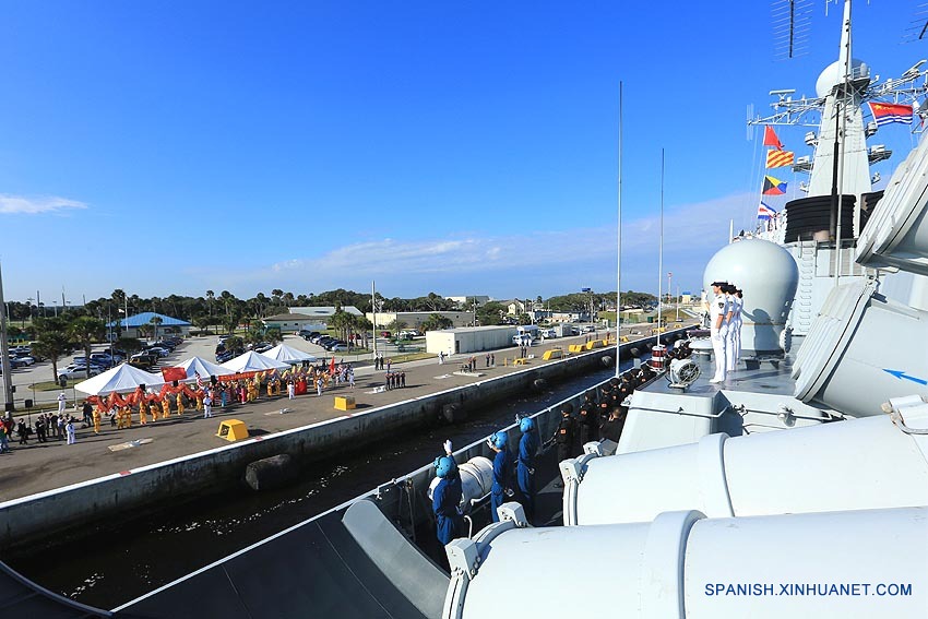Este evento ayuda a fortalecer más los intercambios y la cooperación entre las fuerzas navales de China y EEUU, y sienta una base sólida para que ambas partes construyan un océano y un mundo armoniosos, dijo en la ceremonia de bienvenida, celebrada en la estación, el comandante de la flota china, Wang Jianxun.