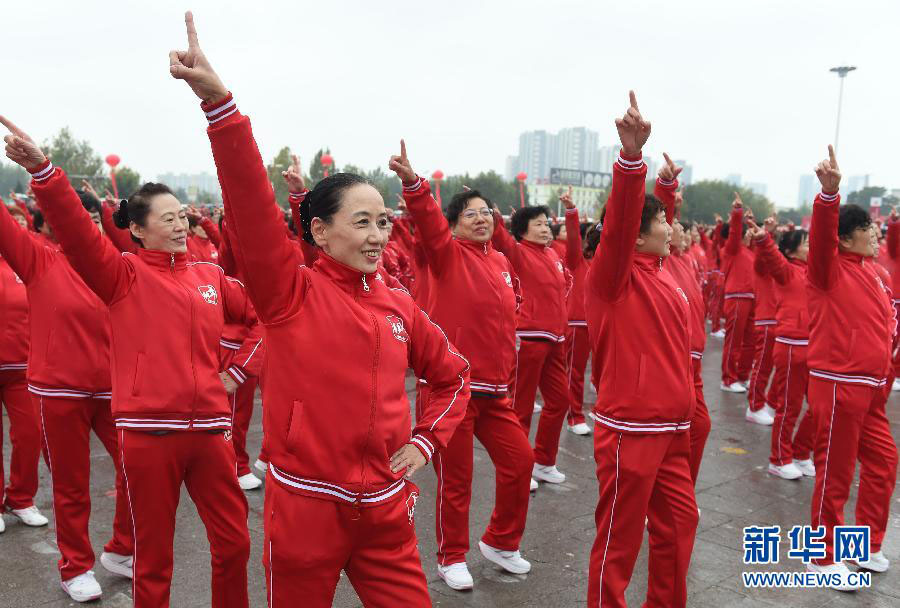 Shijiazhuang, 10/11/2015(El Pueblo en Línea)-Unos 20.000 participantes bailan juntos una coreografía en una plaza de Xianghe, provincia de Hebei, el 7 de noviembre de 2015, batiendo un nuevo récord Guinness. [Foto /Xinhua]