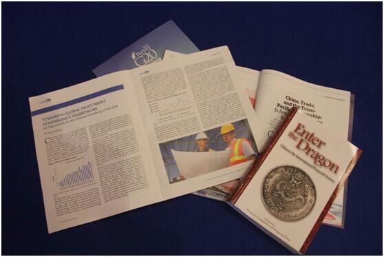En el Centro de Medios de Comunicación, el Centro de Innovación en Gobernanza Internacional, un centro de estudios canadiense, mostró a la gente un libro llamado Entrar en el país del Dragón: China en el mecanismo financiero internacional. El libro hace una interpretación del papel que juega China en el mecanismo financiero internacional desde las perspectivas de la internacionalización del RMB, la internacionalización de las finanzas chinas, y la participación de China en la gobernanza financiera internacional, entre otras. Al as ofrecidas por el Comité Organizados, como Oportunidad de China como anfitriona de la cumbre G-20, o la publicación China, Comercio, y el Acuerdo de Asociación Trans-Pacífico, "China" ha sido sin duda alguna una de las palabras más populares.