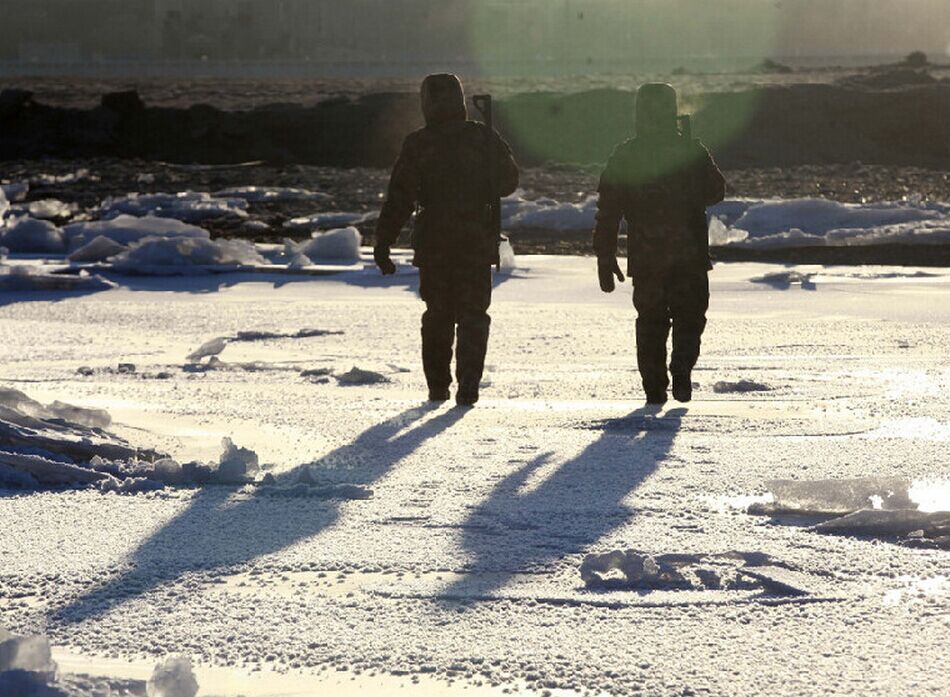 Los guardias fronterizos Xin Guoqiang y Chen Sheng toman posición en una trinchera de hielo para vigilar a los inmigrantes ilegales que quieren entrar a Rusia desde Heihe, provincia de Heilongjiang. Durante la temporada de invierno, la temperatura en Heihe puede llegar a 30 grados bajo cero.