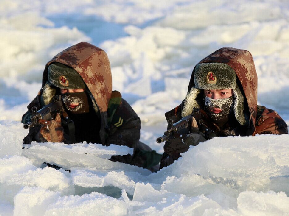 Heihe, 23/11/2015(El Pueblo en Línea)- Los guardias fronterizos Xin Guoqiang y Chen Sheng toman posición en una trinchera de hielo para vigilar a los inmigrantes ilegales que quieren entrar a Rusia desde Heihe, provincia de Heilongjiang. Durante la temporada de invierno, la temperatura en Heihe puede llegar a 30 grados bajo cero.