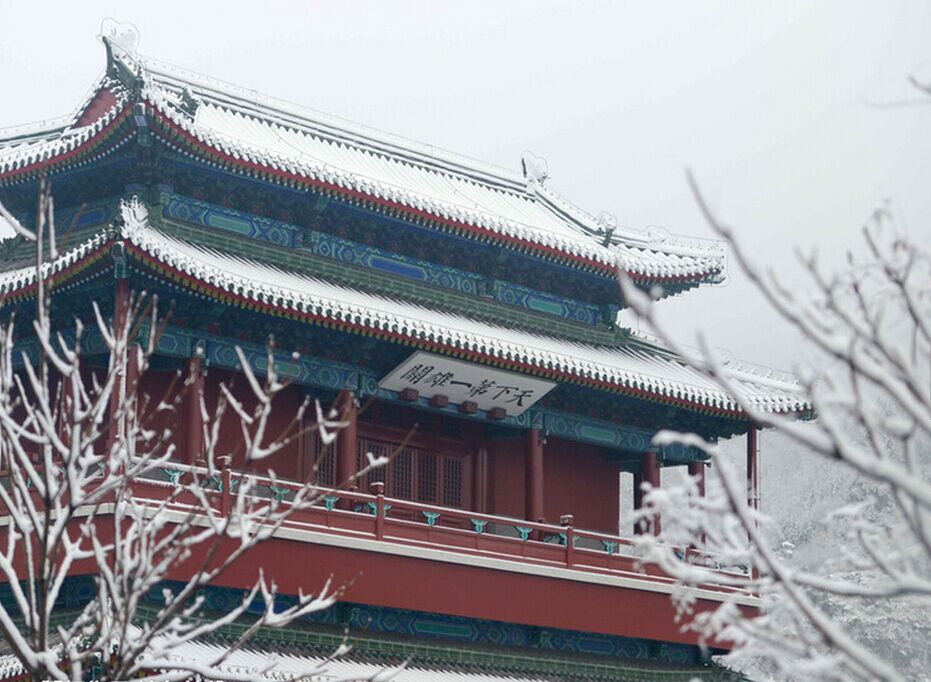La torre de la puerta en la sección de Juyongguan de la Gran Muralla está cubierto de nieve en Beijing el 20 de noviembre de 2015.