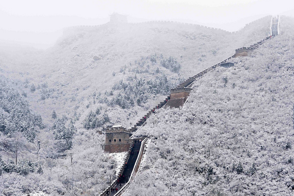 La sección Juyongguan de la Gran Muralla cubierta de nieve.