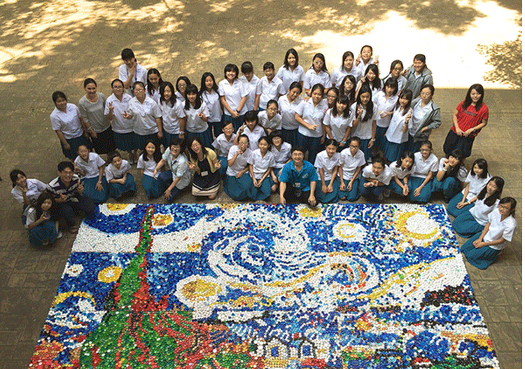 Estudiantes convierten tapas de botellas en un hermoso homenaje a Van Gogh