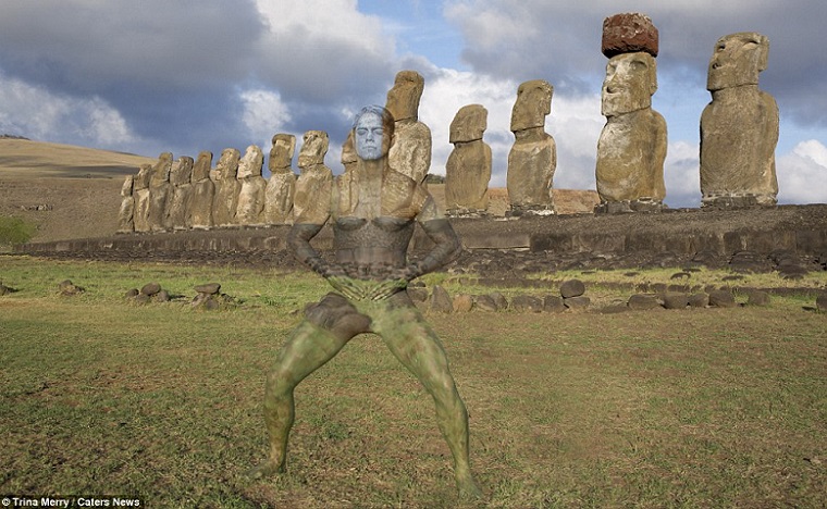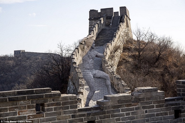 Imágenes en el Coliseo de Roma y la Gran Muralla de China, ambas entre las nuevas 7 maravillas del mundo según publicó las Naciones Unidas en 2007, están entre las fotografías que mezclan el “body paiting” y la audacia del hombre invisible.