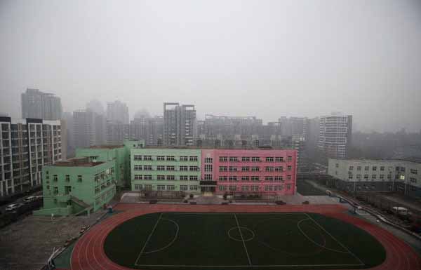 La Escuela Primaria de Ritan cubierta por la espesa niebla contaminada que afecta a Pekín.