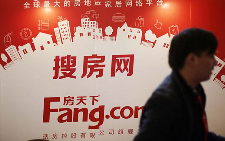 Anuncio del sitio web chino de bienes raíces en línea Fang.com, anteriormente conocido como SouFun o SouFun.com. Shanghai, China, 30 de marzo de 2015.