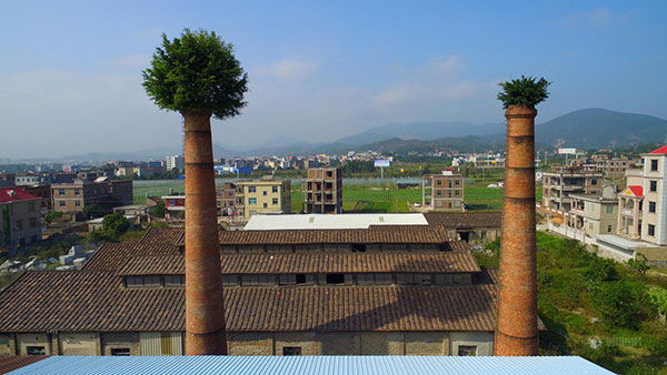 Quanzhou, 24/12/2015(Pueblo en Línea)-Dos grandes y hermosos árboles han comenzado a crecer en la boca de dos chimeneas abandonadas de una antigua fábrica de Quanzhou, provincia de Fujian, informa icpress.cn.