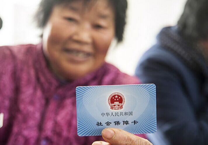 Una mujer muestra su tarjeta de seguro social en Nantong, provincia de Jiangsu.