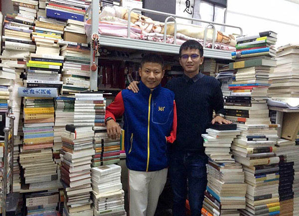 Monta?as de libros en el dormitorio de Li Shibai, en la Universidad Normal de Yunnan en Kunming, provincia de Yunnan. Foto del 28 de diciembre de 2015. [Foto/IC]